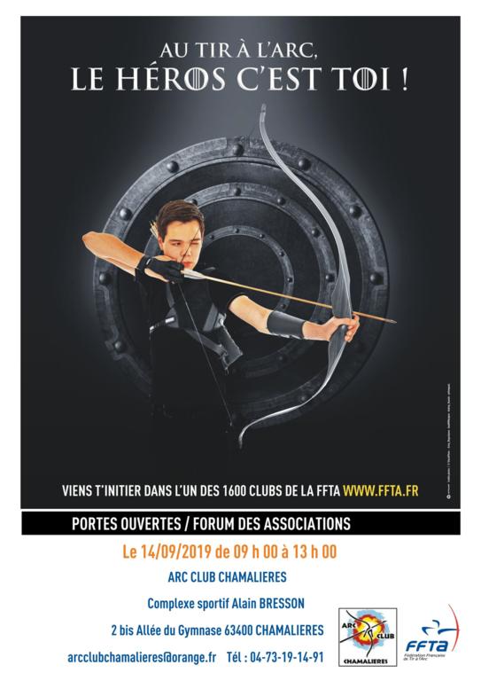 L'ARC CLUB CHAMALIERES sera présent au forum des associations de CHAMALIERES et profite de cette occasion pour organiser une journée portes ouvertes dans la salle de tir à l'arc du complexe sportif Alain BRESSON.